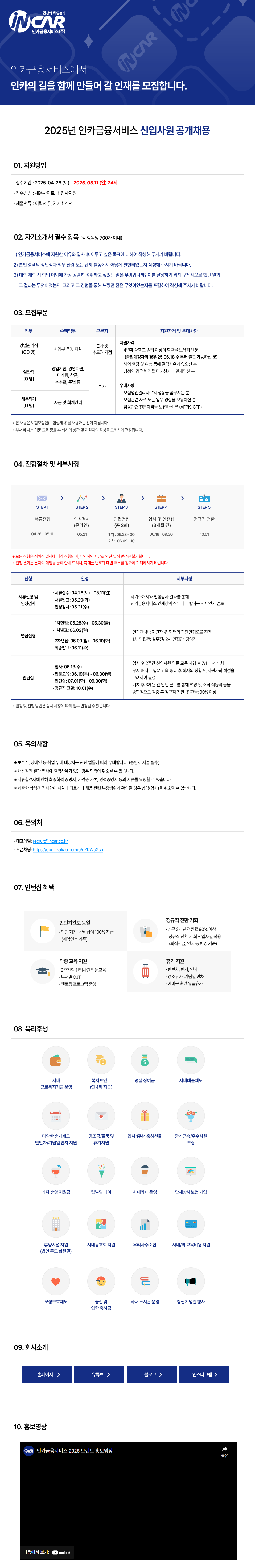 [인카금융서비스]2025년 신입사원 공개채용(~5/11) 글의 상세내용