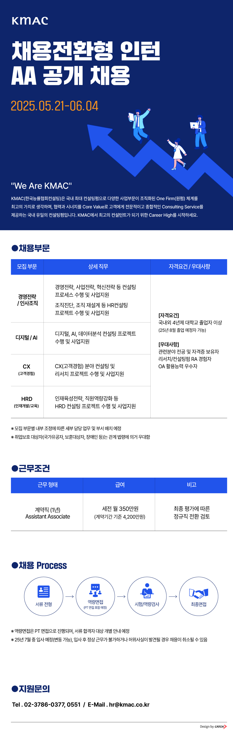 [한국능률협회컨설팅]2025년 채용전환형 인턴(AA) 채용(~6/4) 글의 상세내용