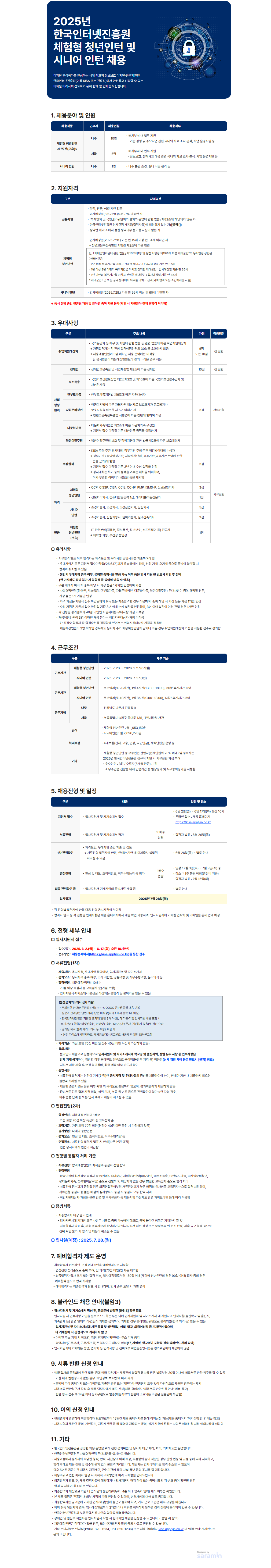 ■ 한국인터넷진흥원 2025년 체험형 청년인턴 및 시니어 인턴