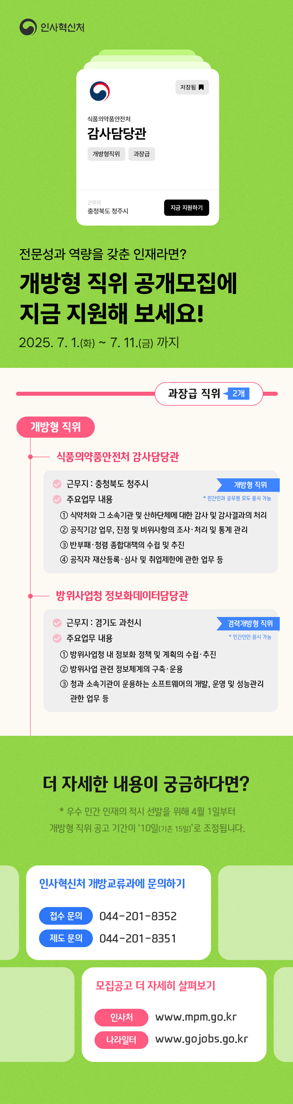 | 제목 | [인사혁신처]2025년 7월 개방형 직위 공개모집(~7/11) | ||||||||||||||||