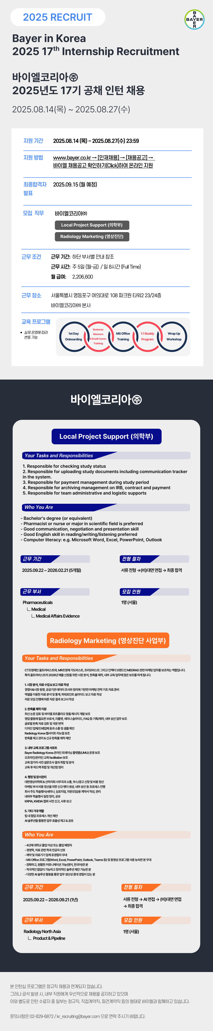 [바이엘코리아]17기 공채 인턴 모집(~8/27) 글의 상세내용