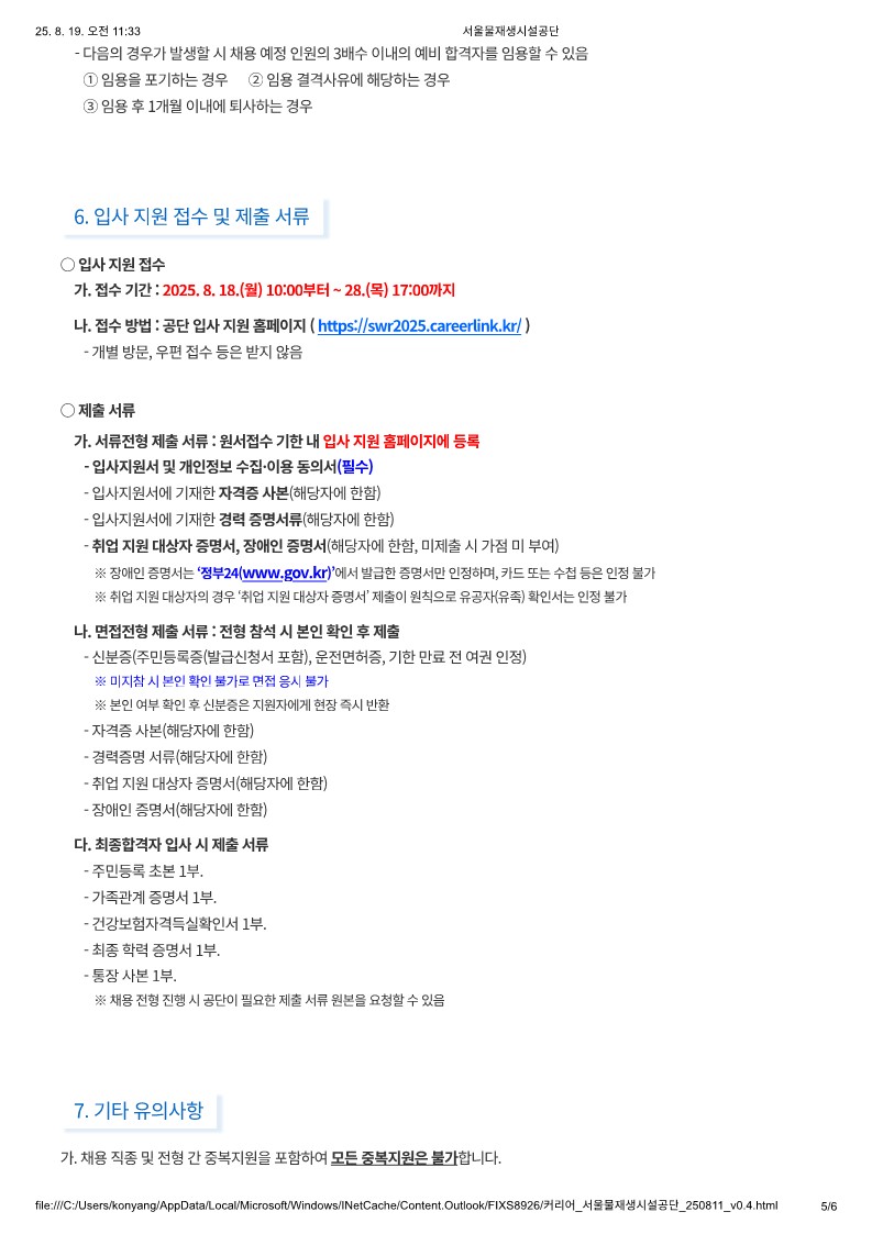 제목 [서울물재생시설공단]2025년 하반기 체험형 청년인턴 공개채용(~8/28)