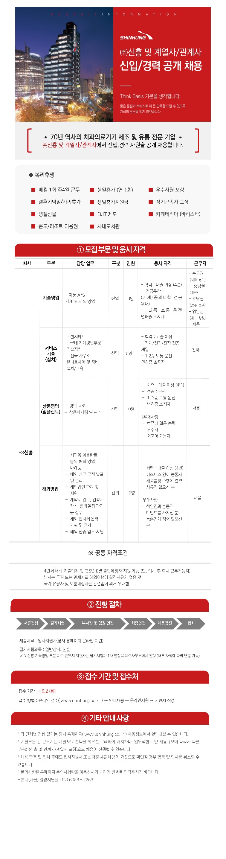 - 접수 방법: 당사 홈페이지 (www.shinhung.co.kr) → 인재채용 → 온라인 지원 → 지원서 작성