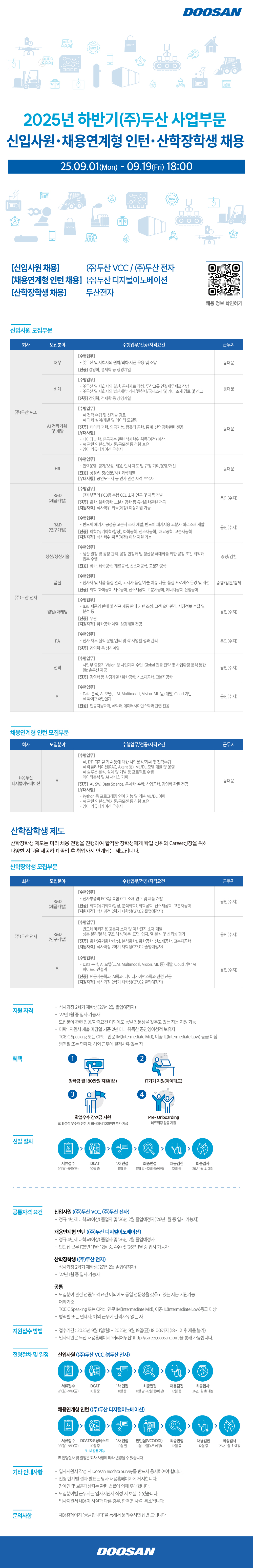 2025년 하반기 (주)두산 사업부문 신입사원·채용연계형 인턴·산학장학생 채용 모집기간 : 9/1(월) ~ 9/19(금) 18:00