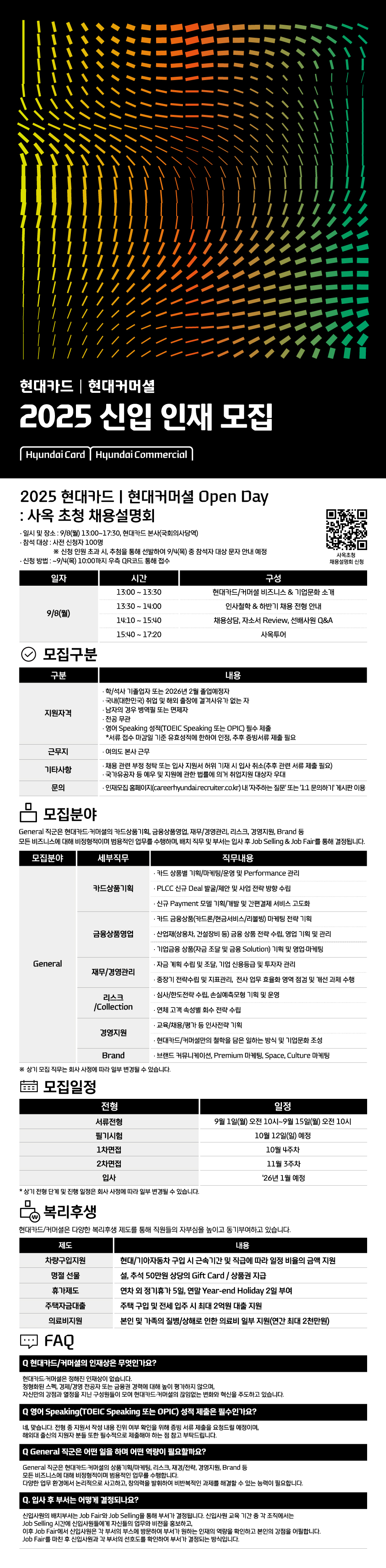 | 제목 | [현대카드|현대커머셜]2025년 신입 인재 모집 (~9/15) | ||||