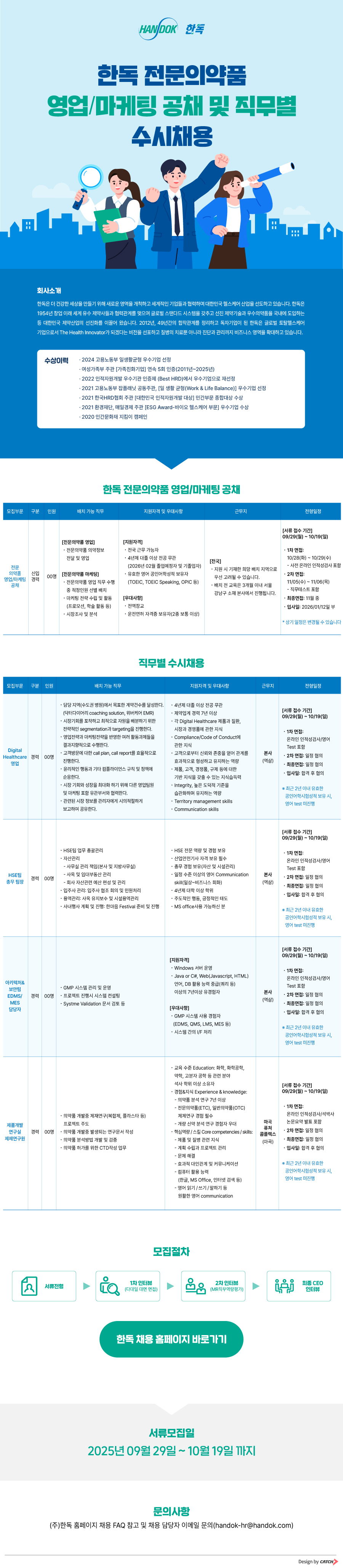 제목 [한독]전문의약품 영업/마케팅 공채 및 직무별 수시채용(~10/19)