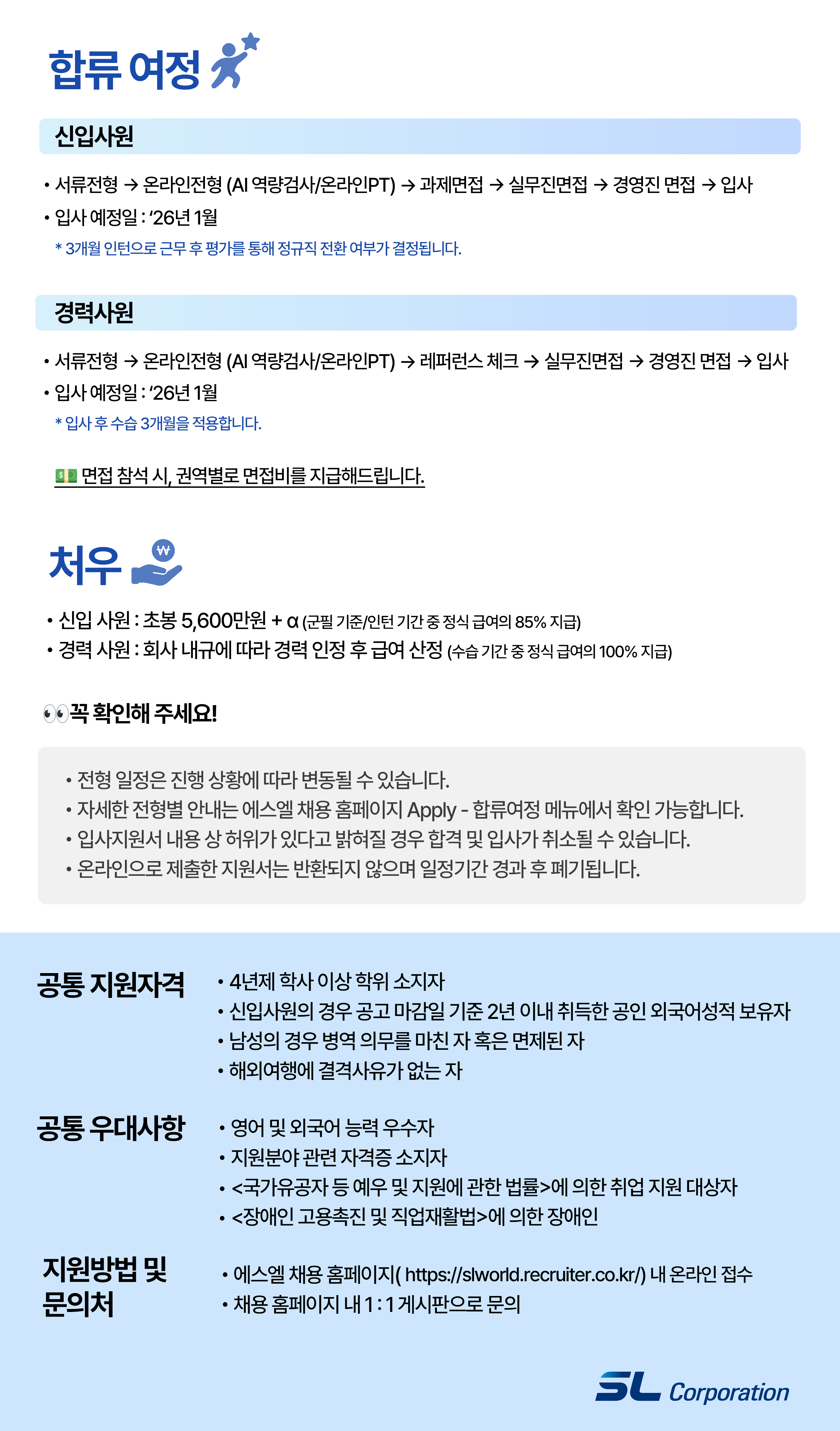 ※ 자세한 내용은 채용 페이지(https://www.recruitslworld.com/)를 확인해 주세요.