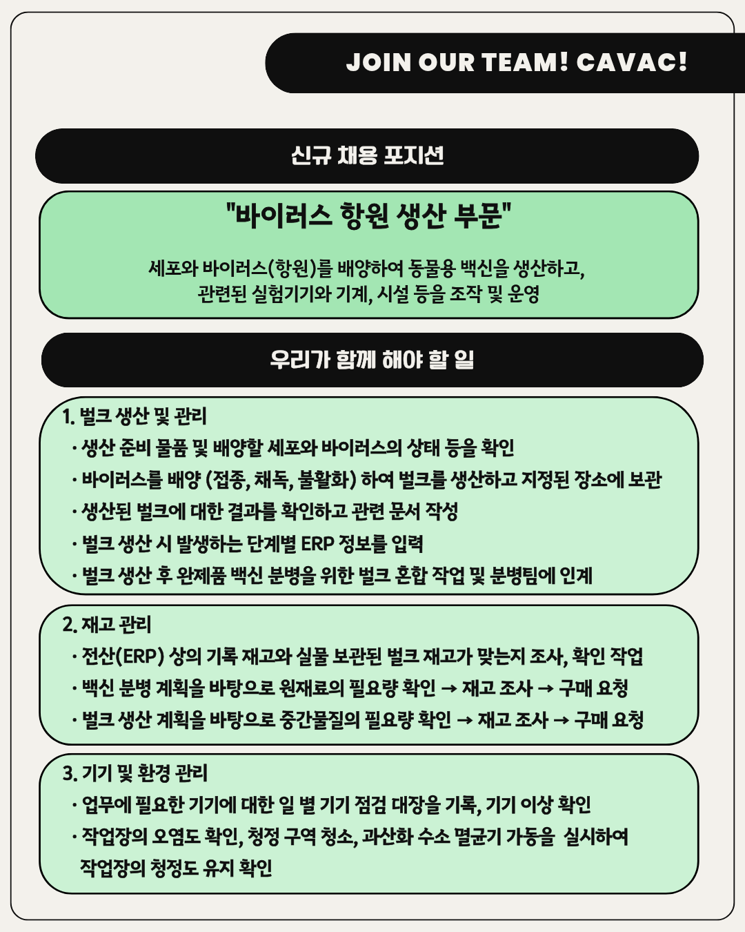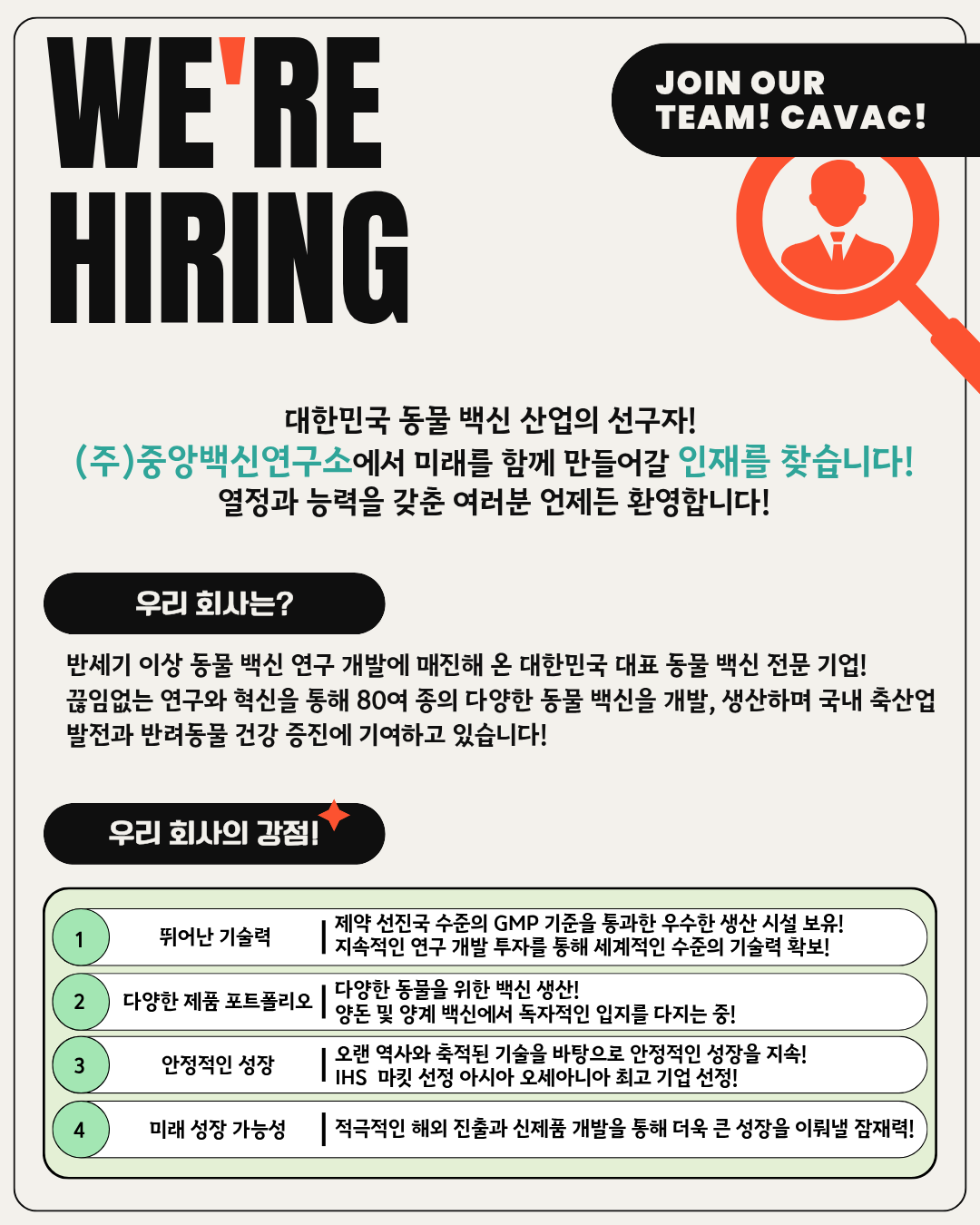 [(주)중앙백신연구소]2025년 하반기 채용(바이러스 항원 생산 부문, 조류 바이러스 항원 생산 부문)(~11/5) 글의 상세내용
