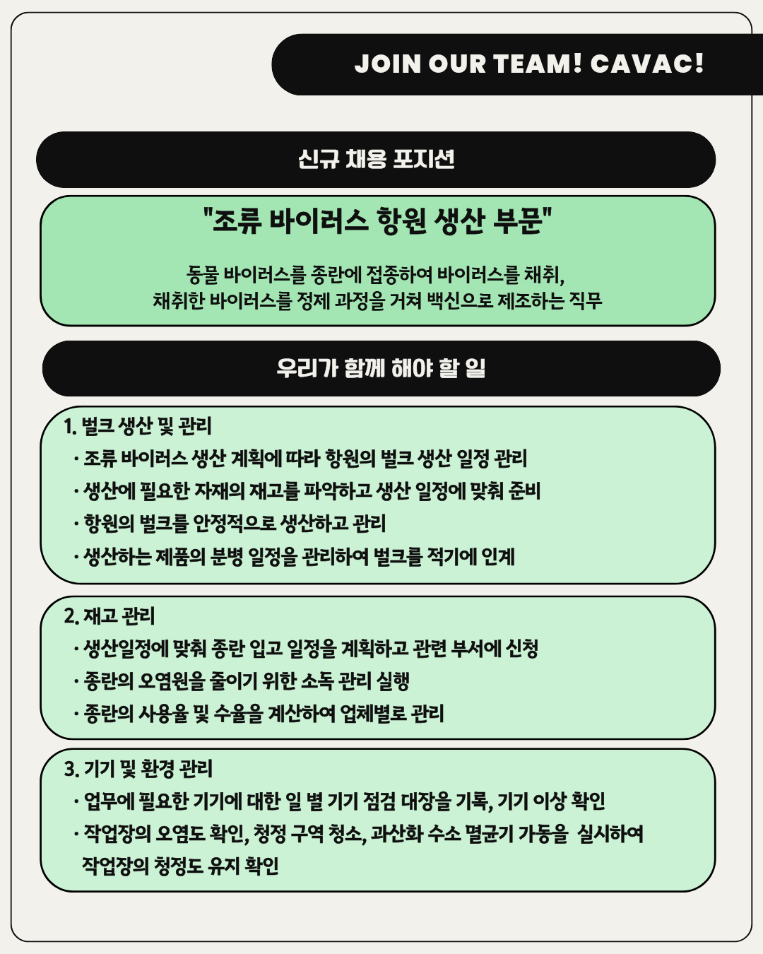 제목 [(주)중앙백신연구소]2025년 하반기 채용(바이러스 항원 생산 부문, 조류 바이러스 항원 생산 부문)(~11/5)