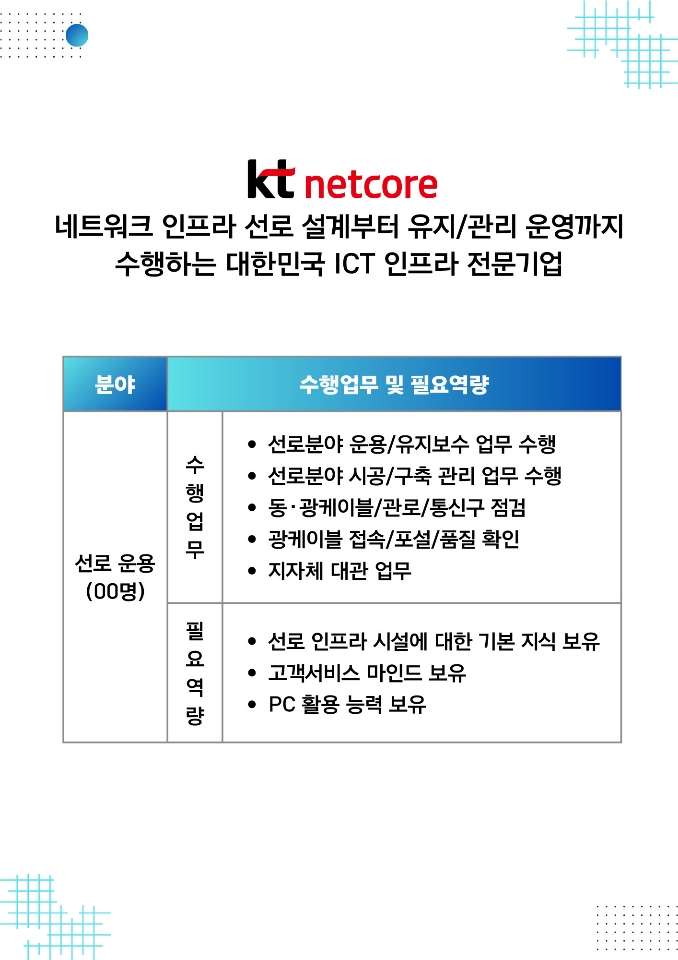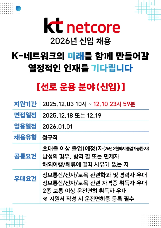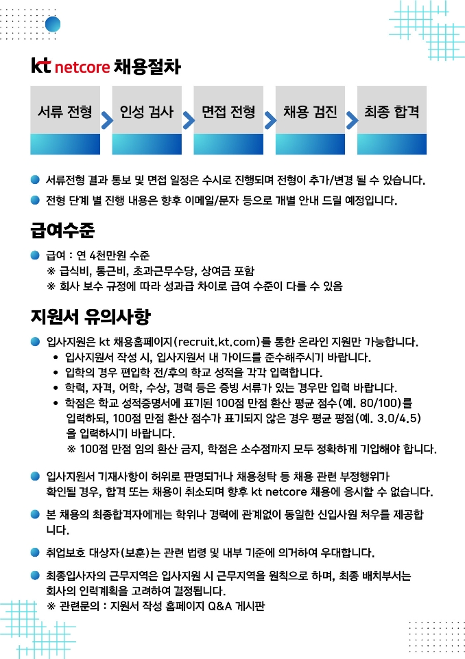 [kt netcore]신입사원 채용(~12/10) 글의 상세내용