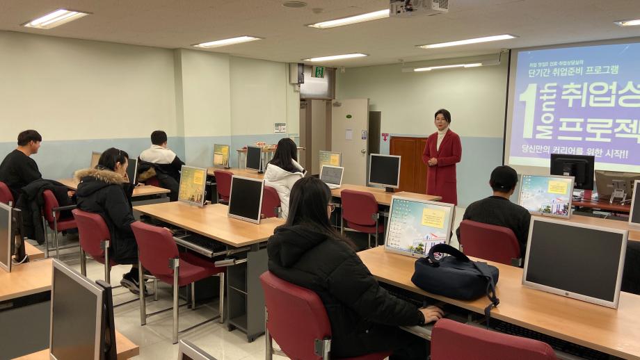 ■ 1month 취업성공 프로젝트 2차 - 운영일시 : 11.28(목) 18:30 ~ 21:30 - 장소 : 산학취업본부 205호 - 참여 단과대학/인원 : 글로벌경영대학, 군사경찰대학 9명 - 내용 : 채용 트렌드, 입사지원서 클리닉 등