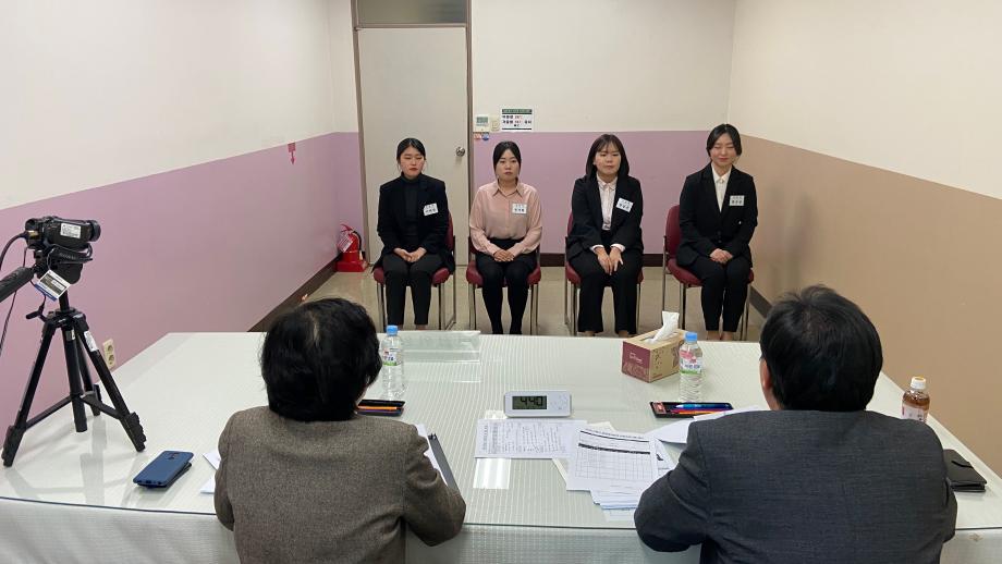■ 12월 1째주 면접대처능력 강화프로그램(초등특수교육과) - 운영일시 : 12.5(목) 14:30 ~ 17:30 - 장소 : 산학취업본부 303호, 304호 - 참여학과/인원 : 초등특수교육과/22명 - 내용 : 실전모의면접