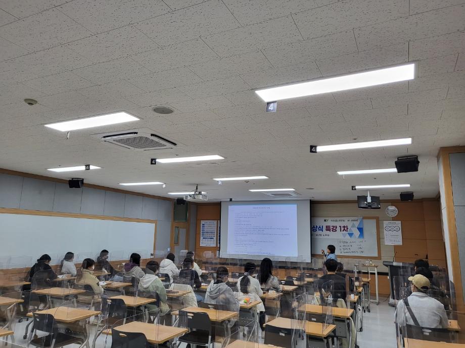 - 프로그램명 : 2022학년도 노무사 원포인트 취업상식 특강 - 기간 : 2022. 11. 22(화 ) ~ 11. 24(목) - 회차 : 3회 - 내용 : 현직 노무사의 취업관련 노동법 상식 특강 및 멘토링 - 참여인원 : 80명 - 강사 : 김난희 노무사