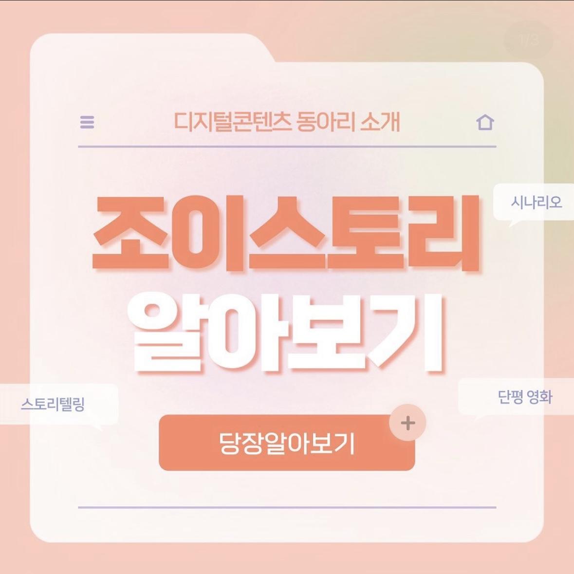 Joy story는 즐거움이 있는 이야기라는 뜻으로 기획의 기초가 되는 스토리에 관심과 열정이 있는 학생들이 모인 동아리입니다. 독특한 발상의 스토리텔링과 이를 뒷받침 할 수 있는 탄탄한 글짓기 실력을 키워 인문학적인 지식을 쌓고자 노력을 하고 있습니다. 동아리 문집 만들기, 시 짓기, 단편 영화 제작, 릴레이 시나리오 쓰기 등의 활동이 이루어지고 있으며 스토리텔링의 일환으로 소재 발굴에도 관심을 넓혀 보다 풍부하고 깊은 스토리 집필의 꿈을 키우고 있습니다.