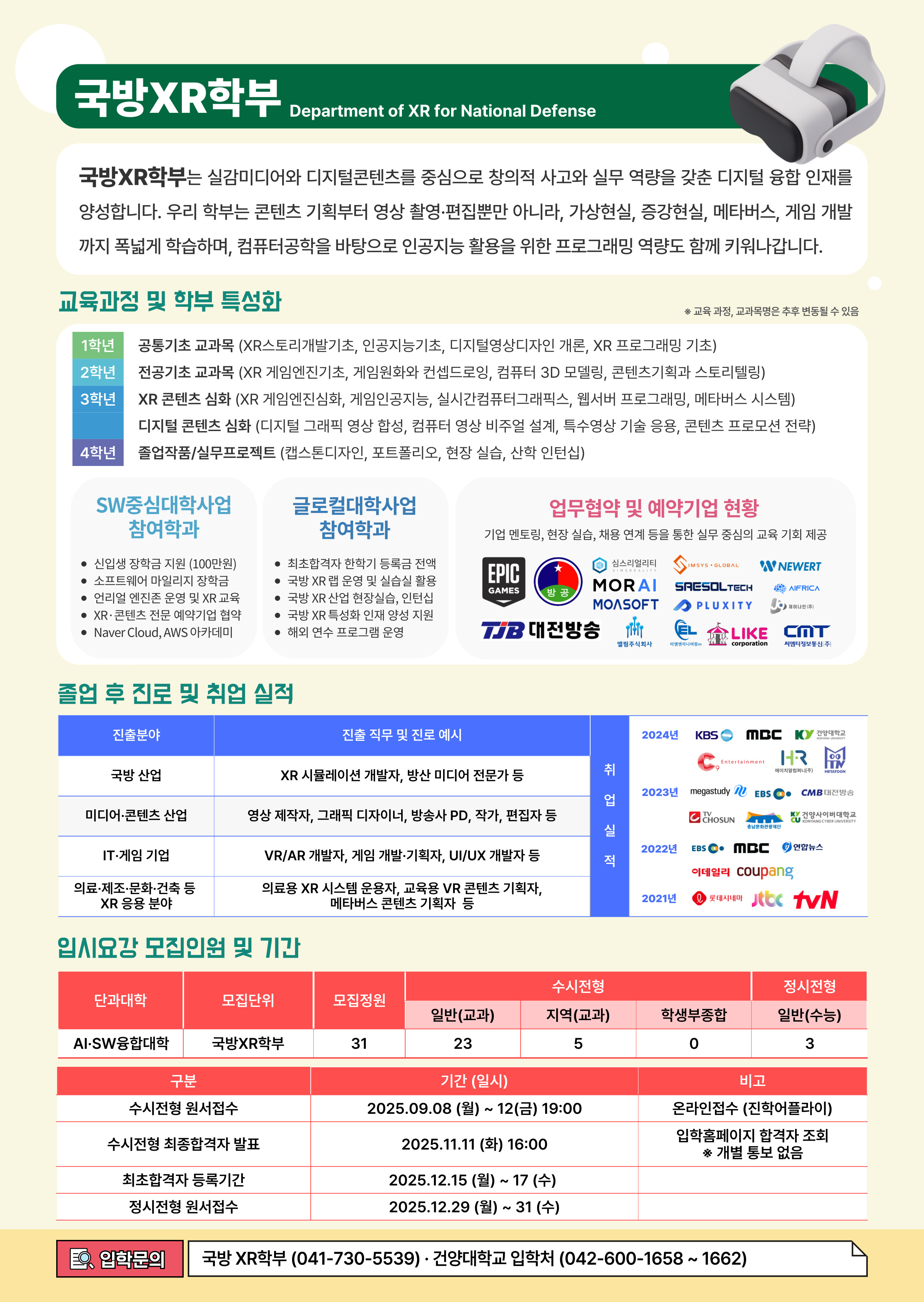 실감미디어 디지털콘텐츠 인재양성 국방XR학부 글의 상세내용