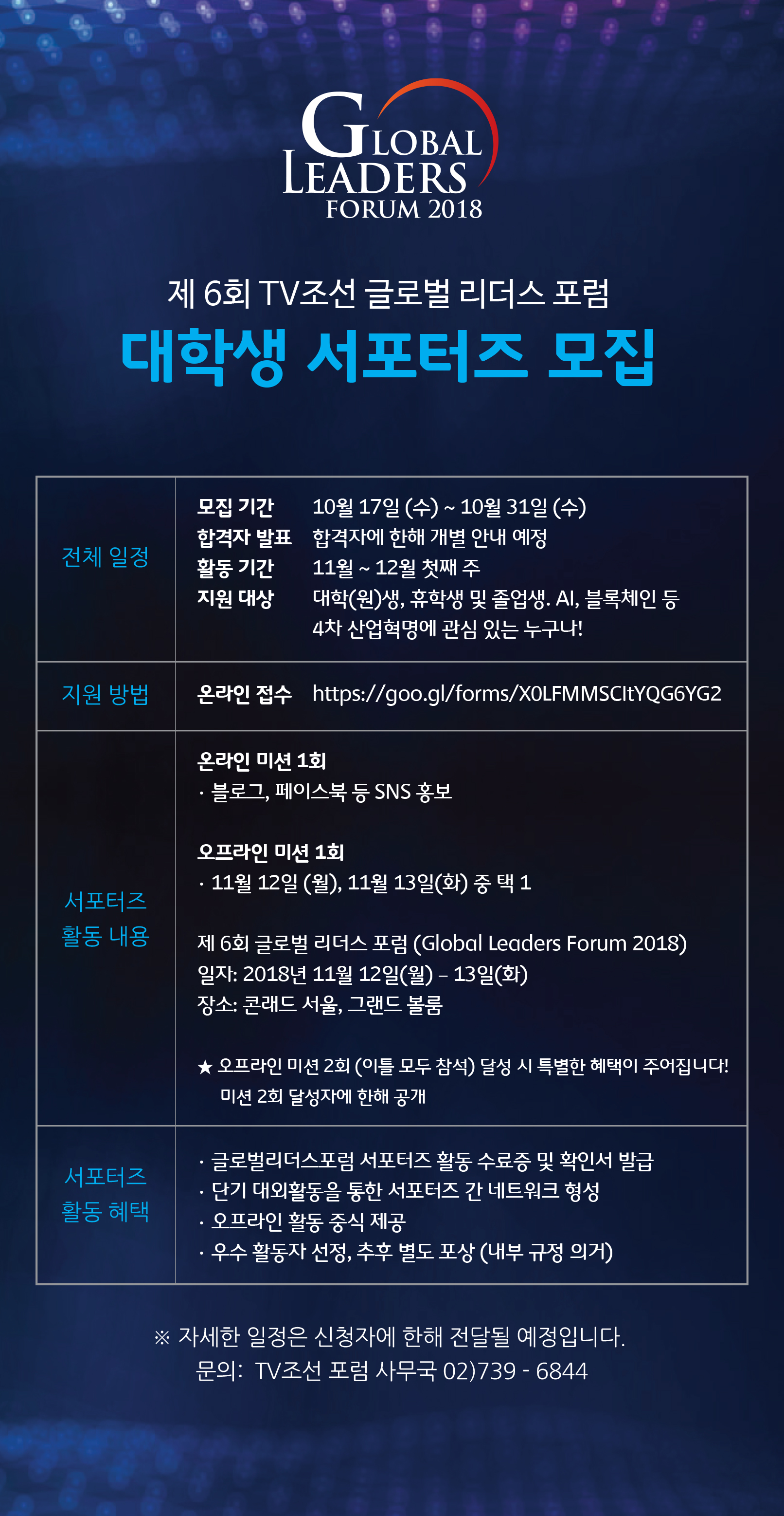 (~10/31)제6회 TV조선 글로벌리더스포럼 대학생 서포터즈 모집 안내 글의 상세내용