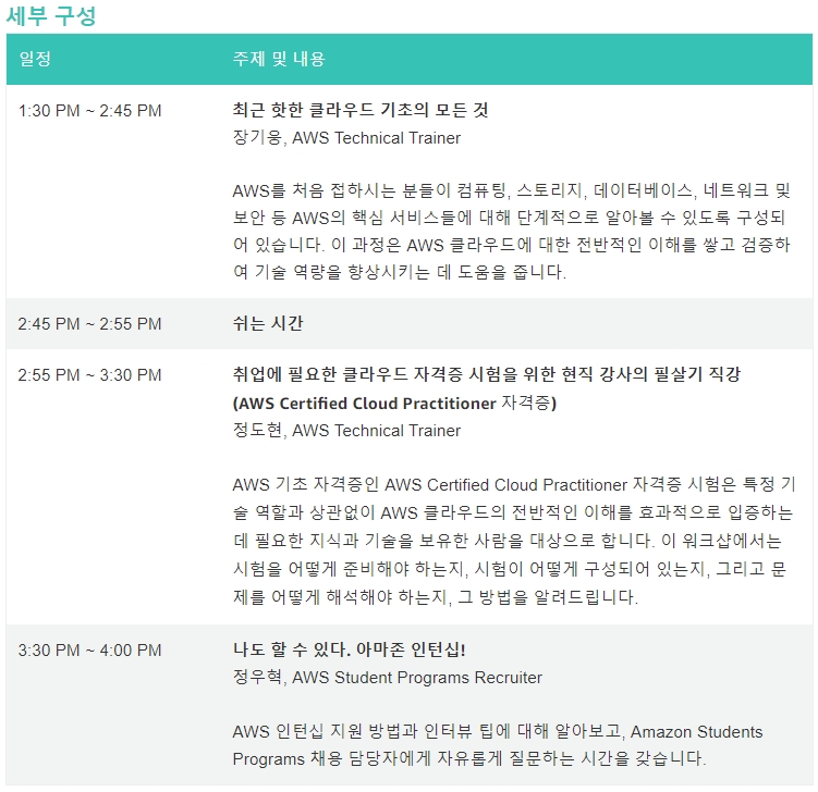 | 제목 | 클라우드 101 및 아마존 인턴십 설명회 | ||||