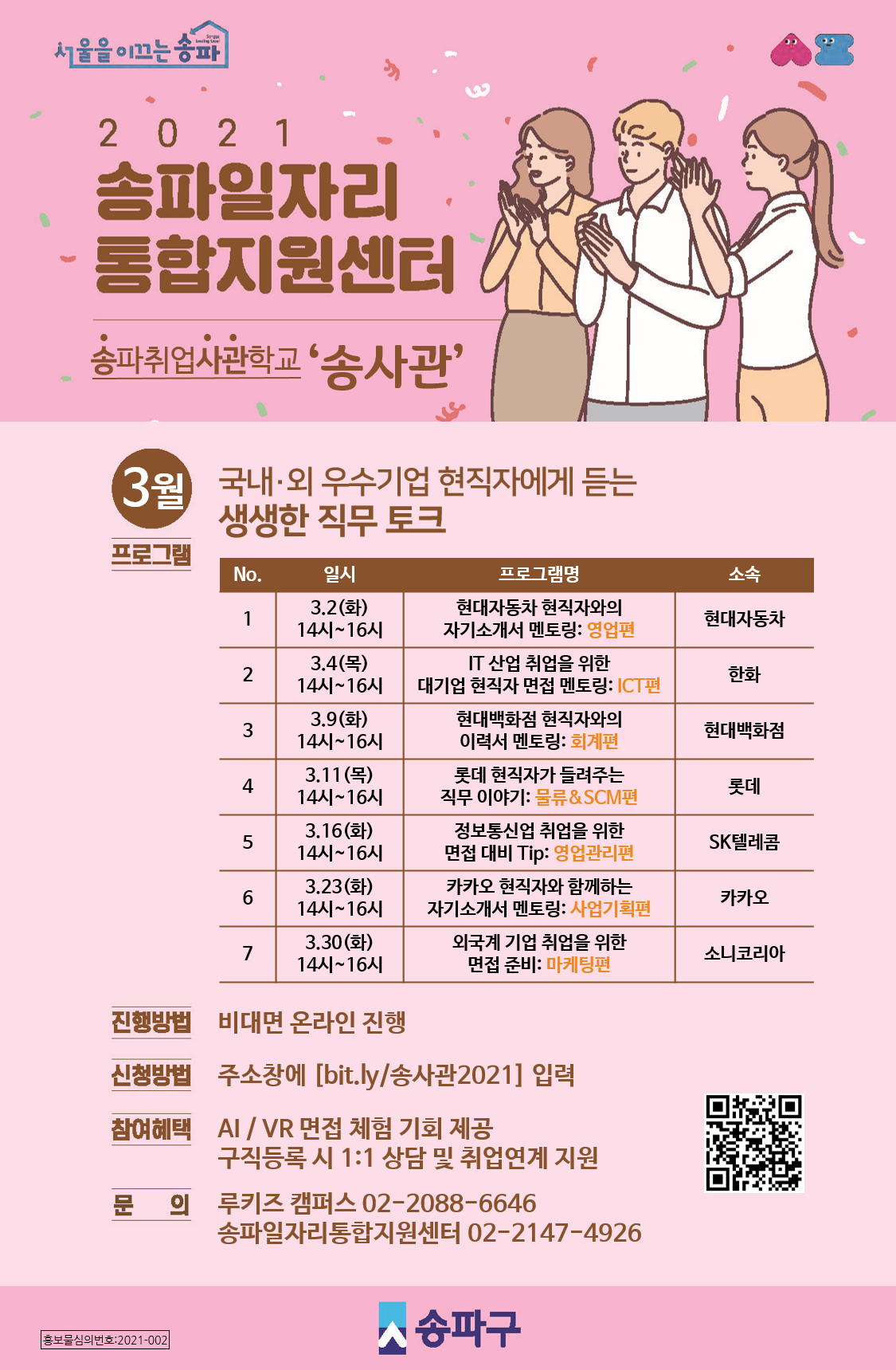 | 제목 | 송파일자리통합지원센터 3월 프로그램 | ||||