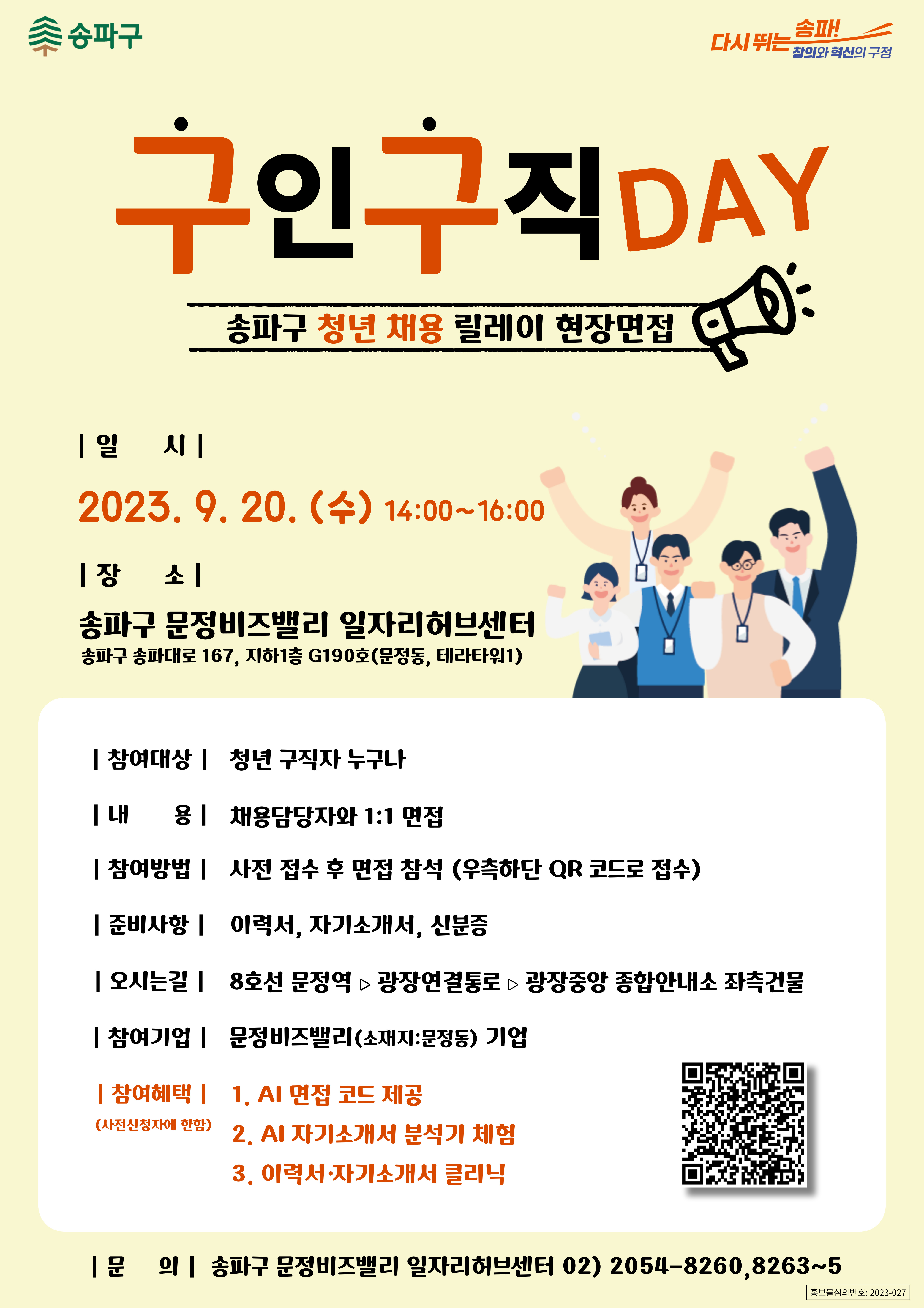 □문 의 처:문정비즈밸리일자리허브센터(02-2054-8265)