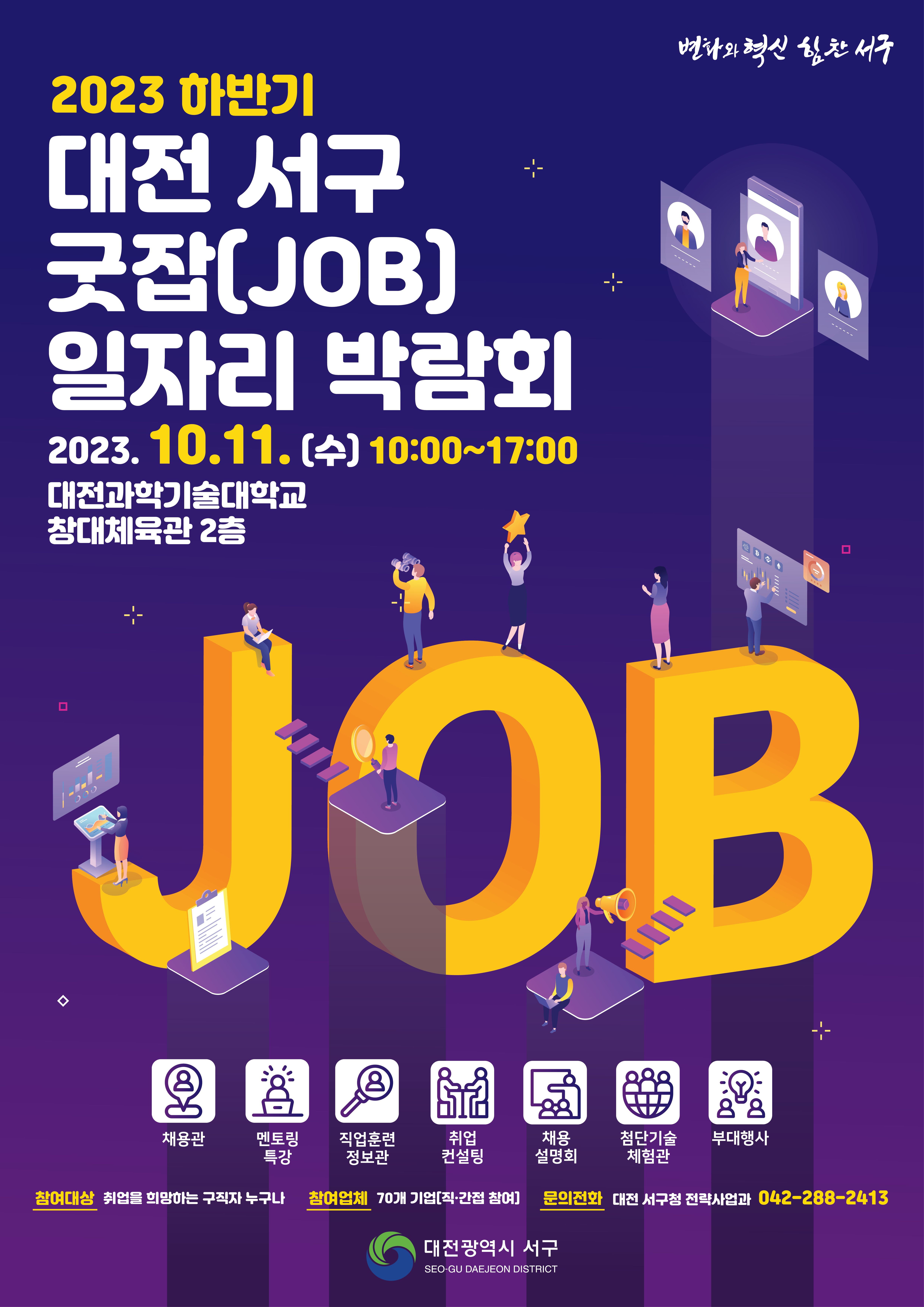 | 제목 | [대전광역시서구] 2023 하반기 대전 서구 굿잡(JOB) 일자리박람회 | ||||