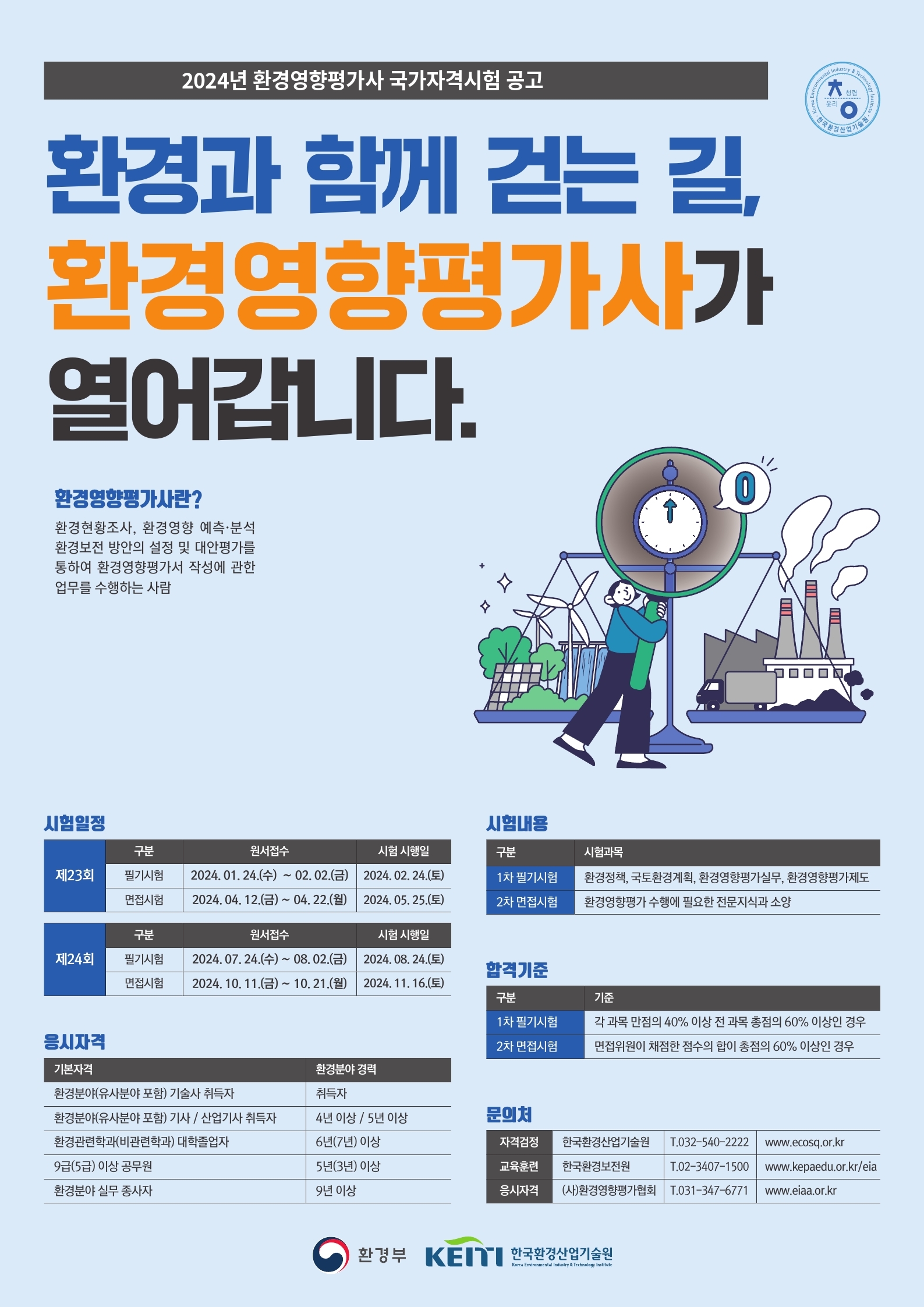 제목 [한국환경산업기술원] 2024년 환경영향평가사 국가전문자격시험 시행