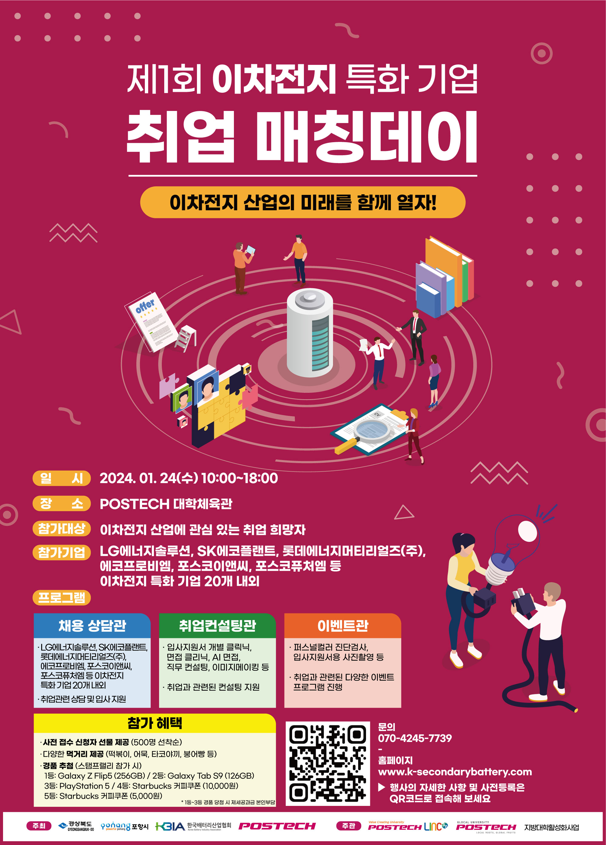 | 제목 | [포항시/포항공과대학교] 제1회 이차전지 특화 기업 취업매칭데이 개최 | ||||