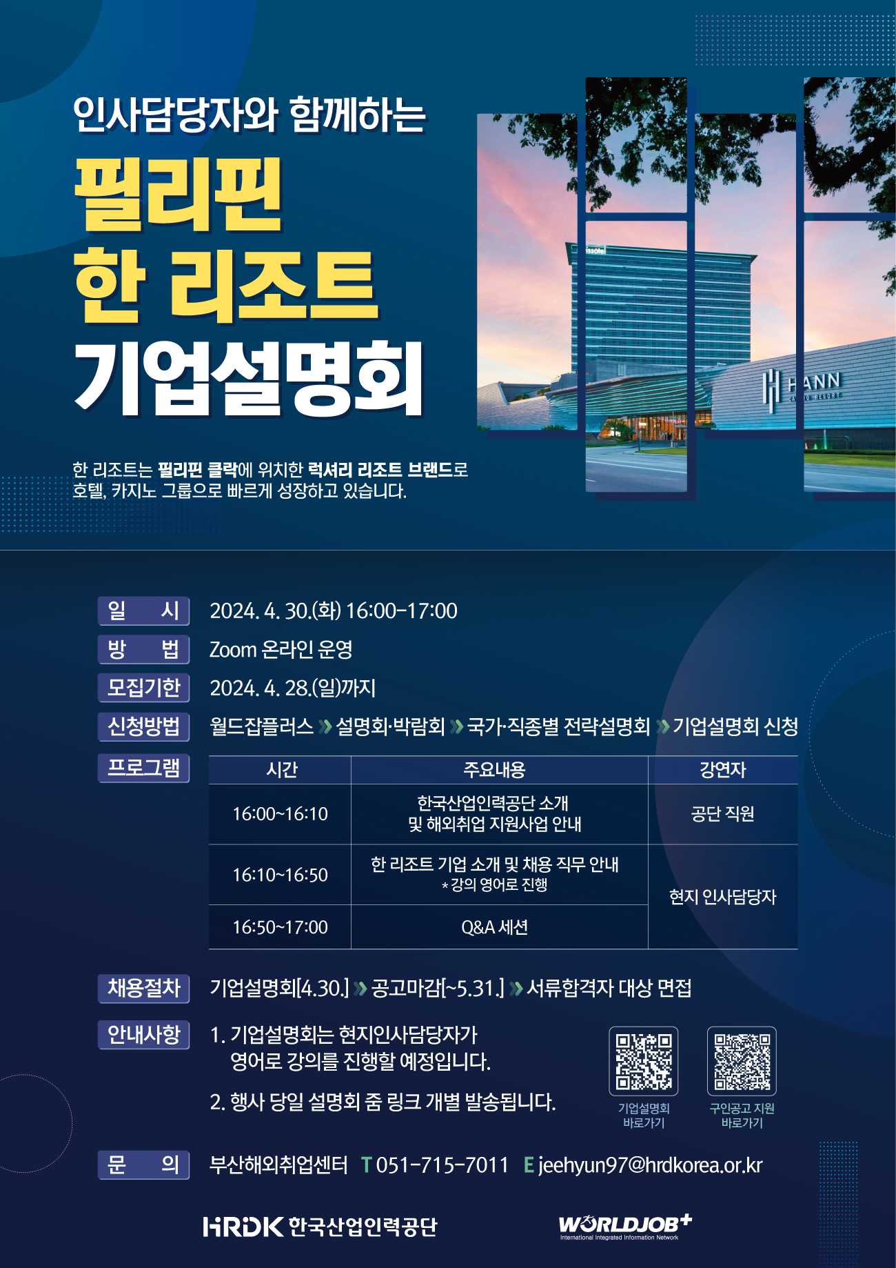 제목 [해외취업국]필리핀 「한(Hann) 리조트」 기업설명회 모집