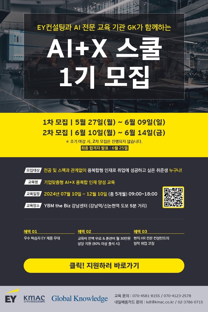 | 제목 | [고용노동부 주관 K-디지털 트레이닝] EY ‘AI+X 스쿨’ 모집 | ||||