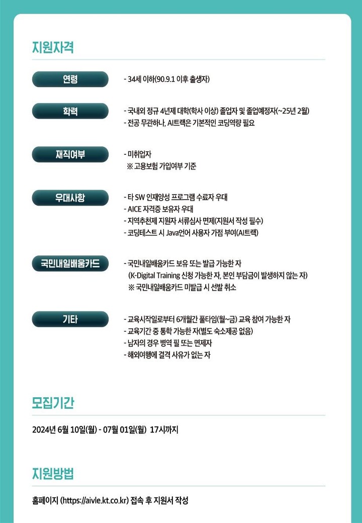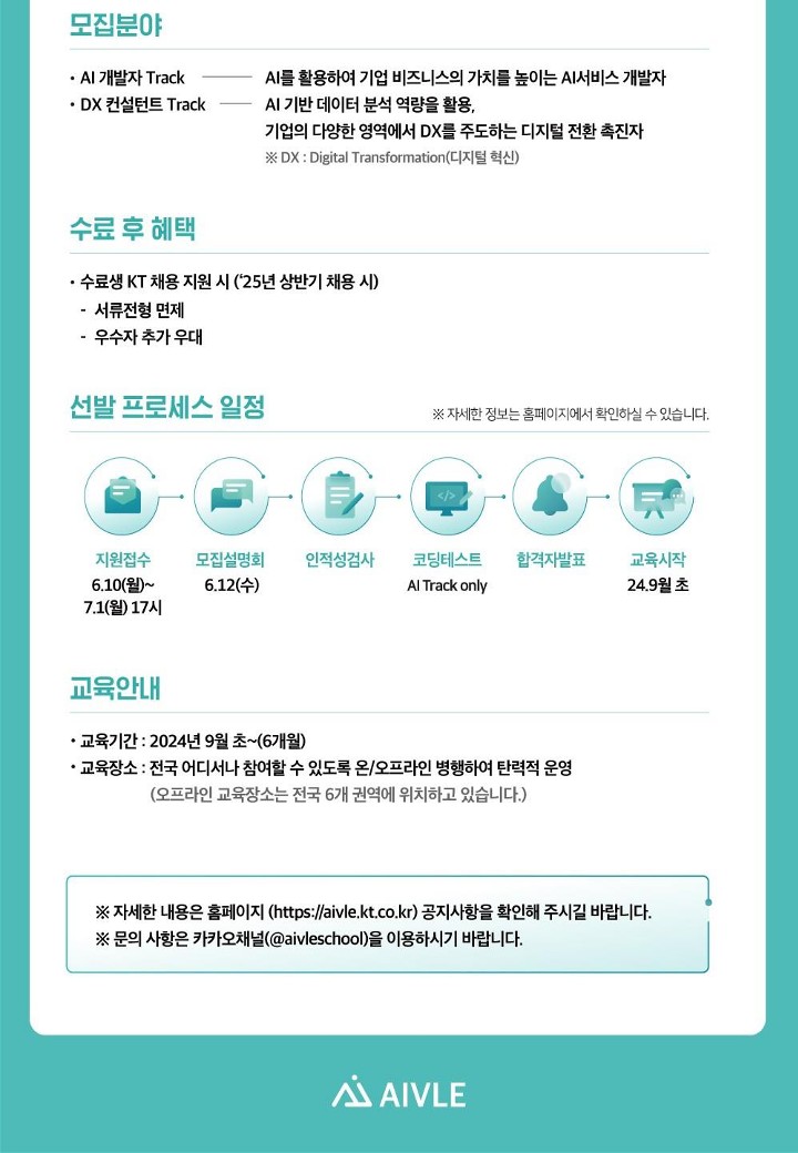 제목 KT AIVLE School 6기 지역추천제 교육생 선발