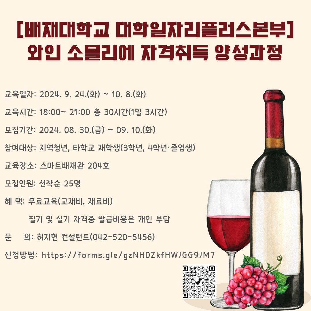 제목 2024학년도 거점형 특화 프로그램 와인 소믈리에 자격취득 양성과정
