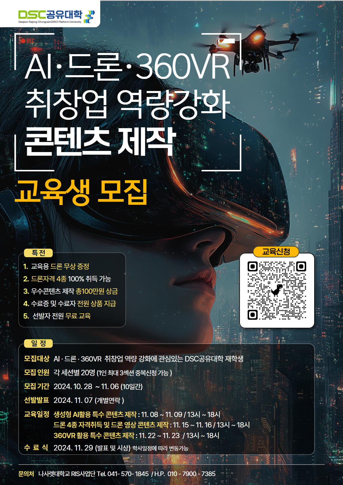 'AI·드론·360VR 취창업 역량강화 콘텐츠 제작' 교육생 모집 글의 상세내용