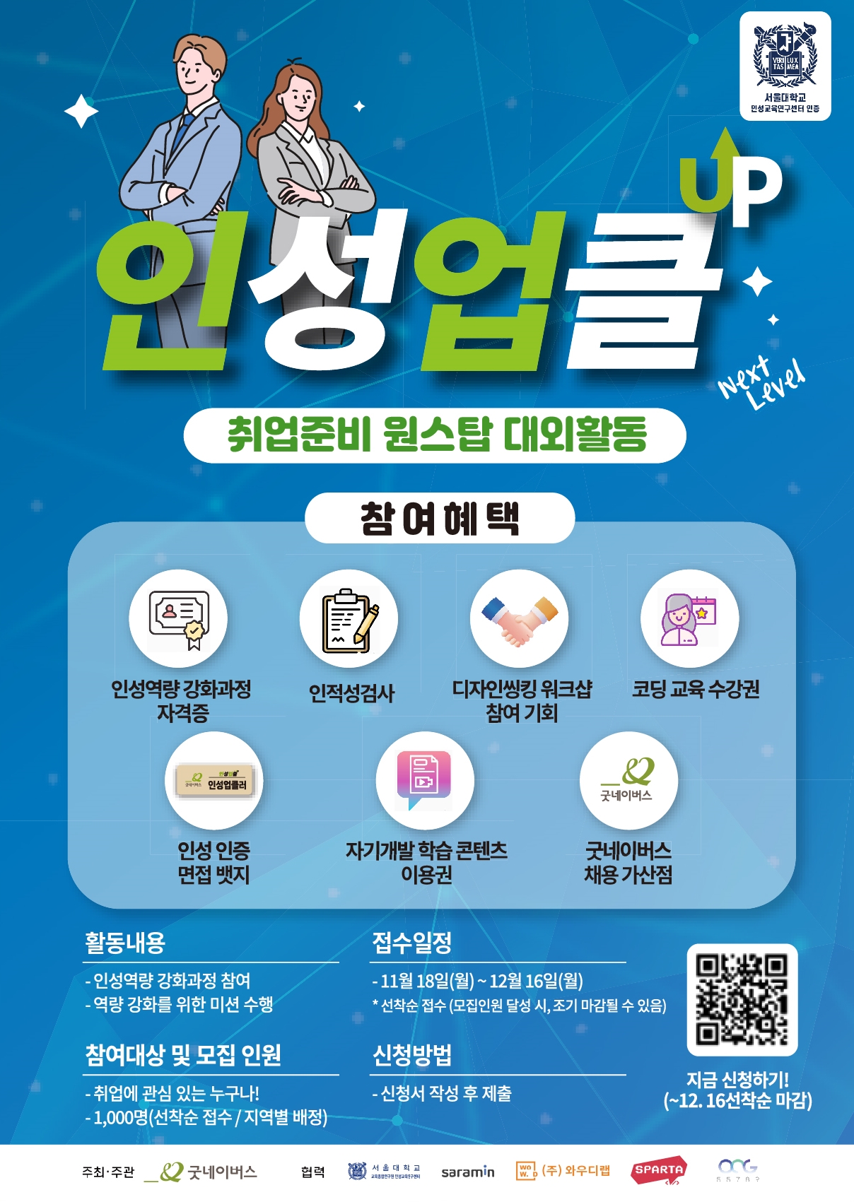 | 제목 | 2024년 굿네이버스 미취업청년 인성역량 강화 자격증 과정 11기 | ||||