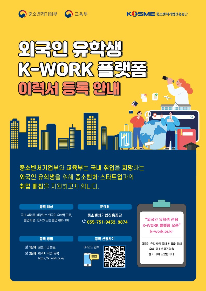 제목 외국인 유학생 취업매칭 플랫폼(K-WORK) 이력서 등록 안내