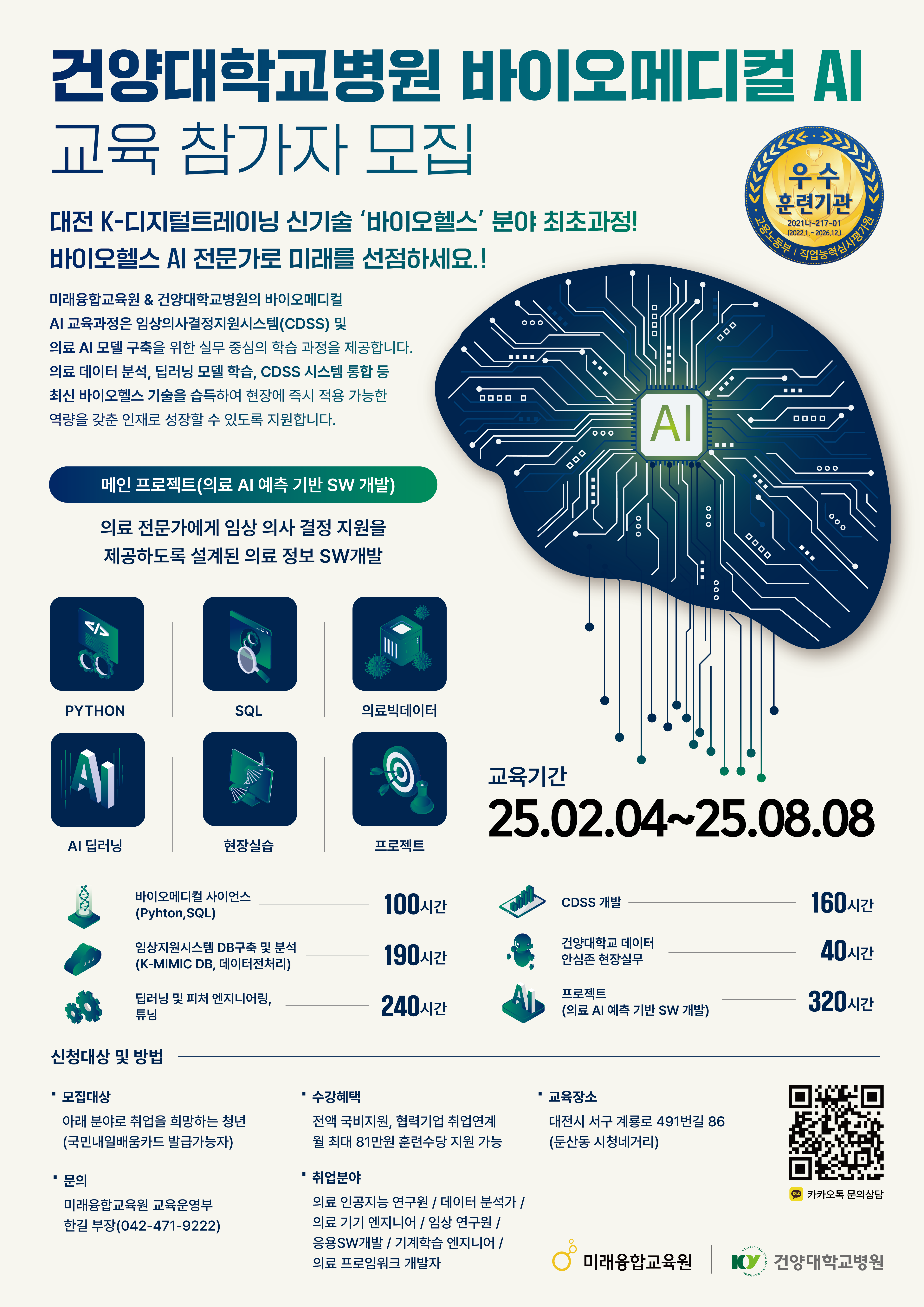 | 제목 | 『융합_건양대학교병원 바이오메디컬 인공지능』 과정 | ||||