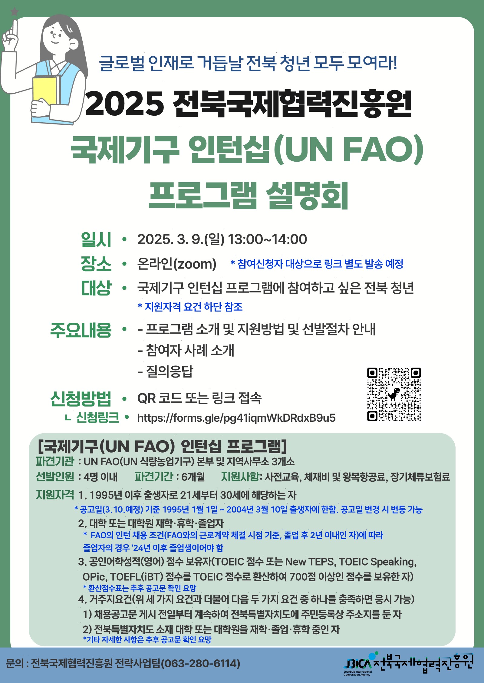 | 제목 | [전북]2025 국제기구 인턴십 프로그램 설명회 참여자 모집 | ||||