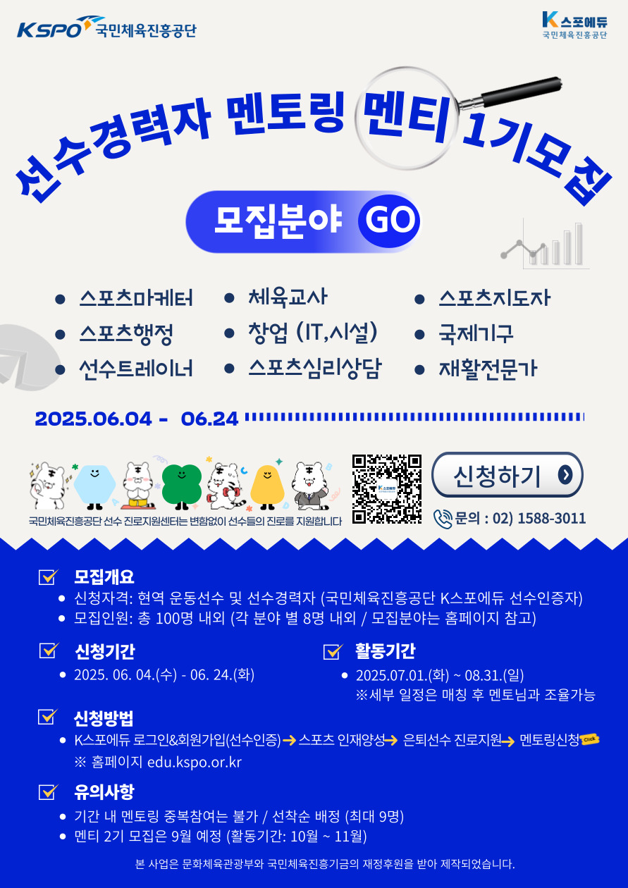 제목 2025년 은퇴선수 진로지원「멘토링 프로그램-선수경력자 멘티 1기 모집」