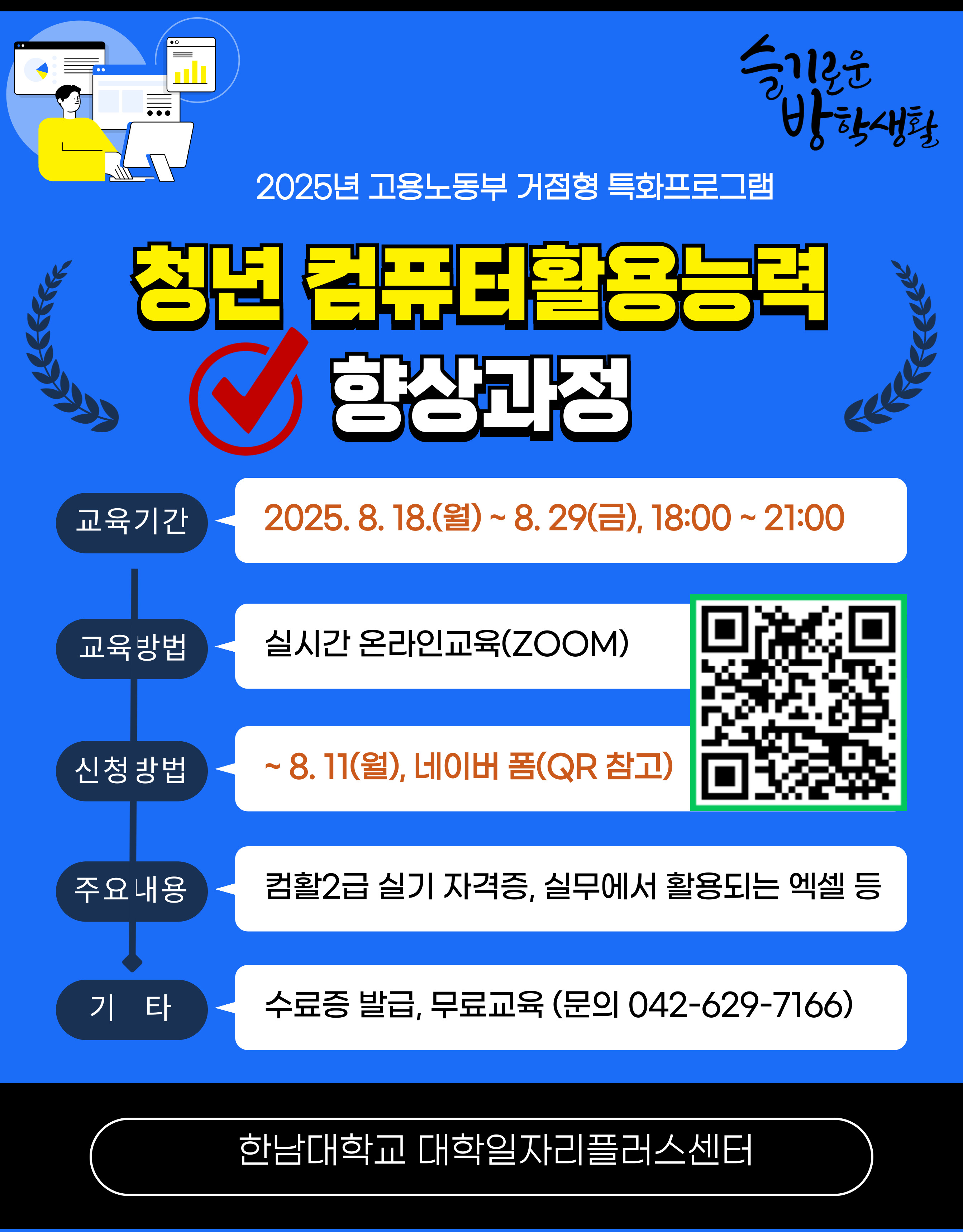 | 제목 | 2025년 청년 컴퓨터활용능력 향상과정 | ||||