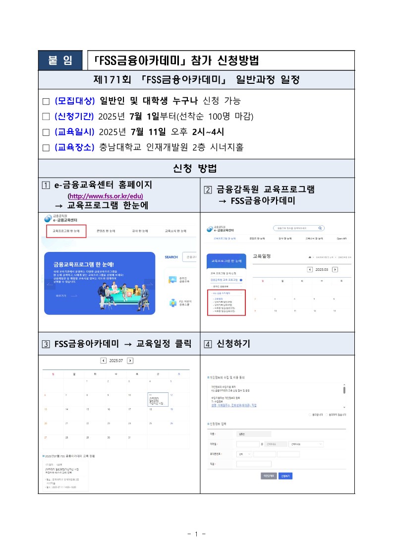 | 제목 | [금융감독원]2025년 7월 FSS금융아카데미 신청 접수 안내 | ||||