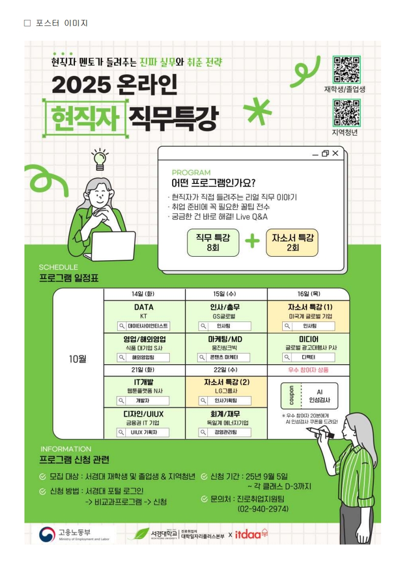 2025학년도 2학기 온라인 현직자 직무 클래스 글의 상세내용