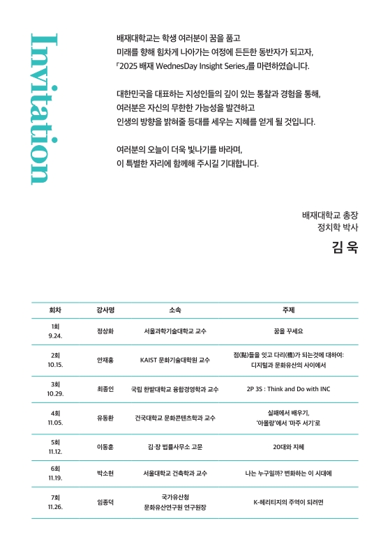 | 제목 | 2025 배재 WednesDay Insight Series | ||||