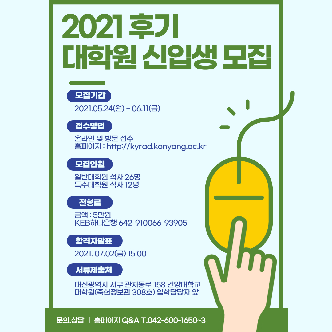 | 제목 | 2021학년도 후기 대학원 신입생 모집 안내 | ||||