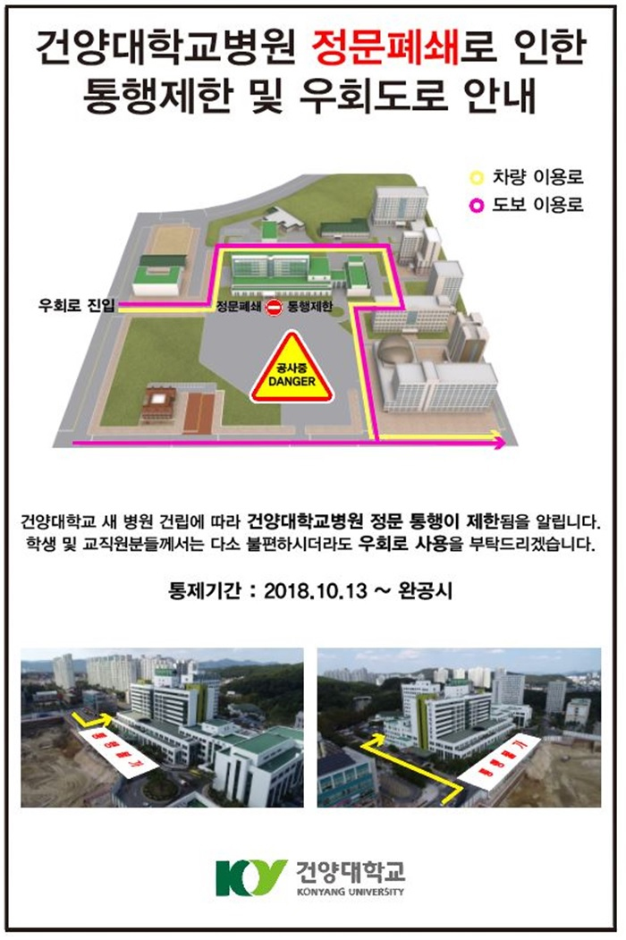 | 제목 | 건양대학교병원 정문 공사로 인한 우회로 이용 안내 | ||||