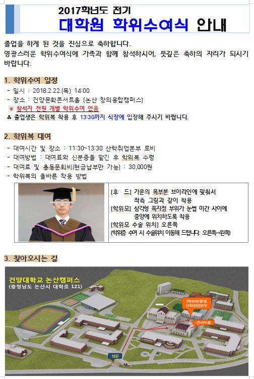 | 제목 | 2017학년도 전기 학위수여식 안내(2018.2.22) | ||||
