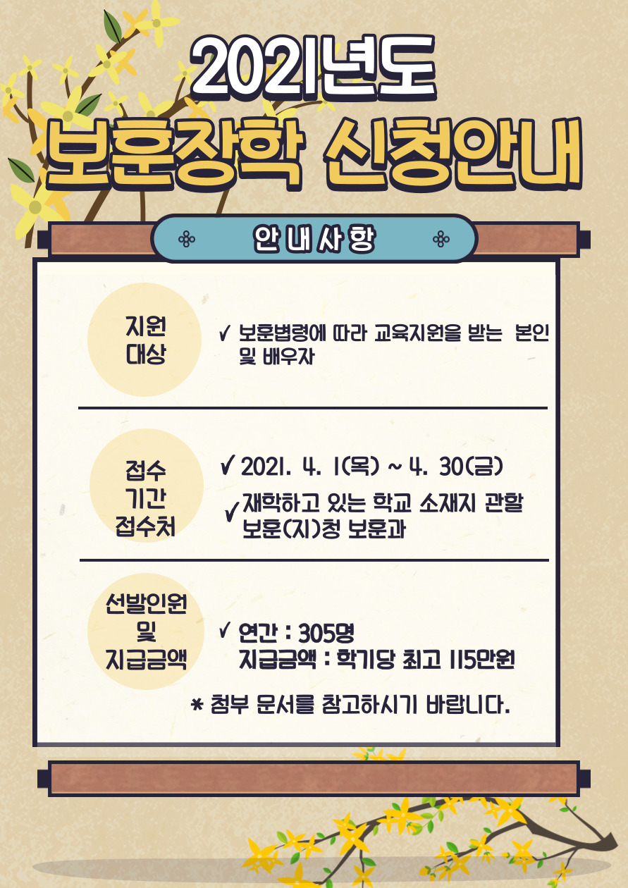 | 제목 | 2021년도 보훈장학 신청 안내 | ||||