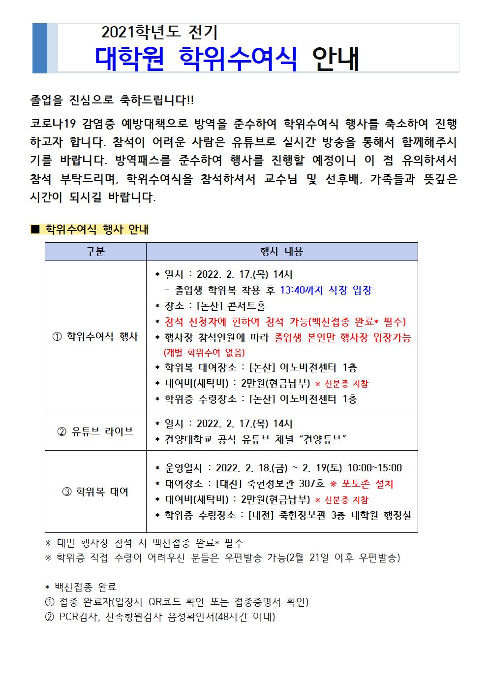 | 제목 | 2021학년도 전기 학위수여식 안내 | ||||