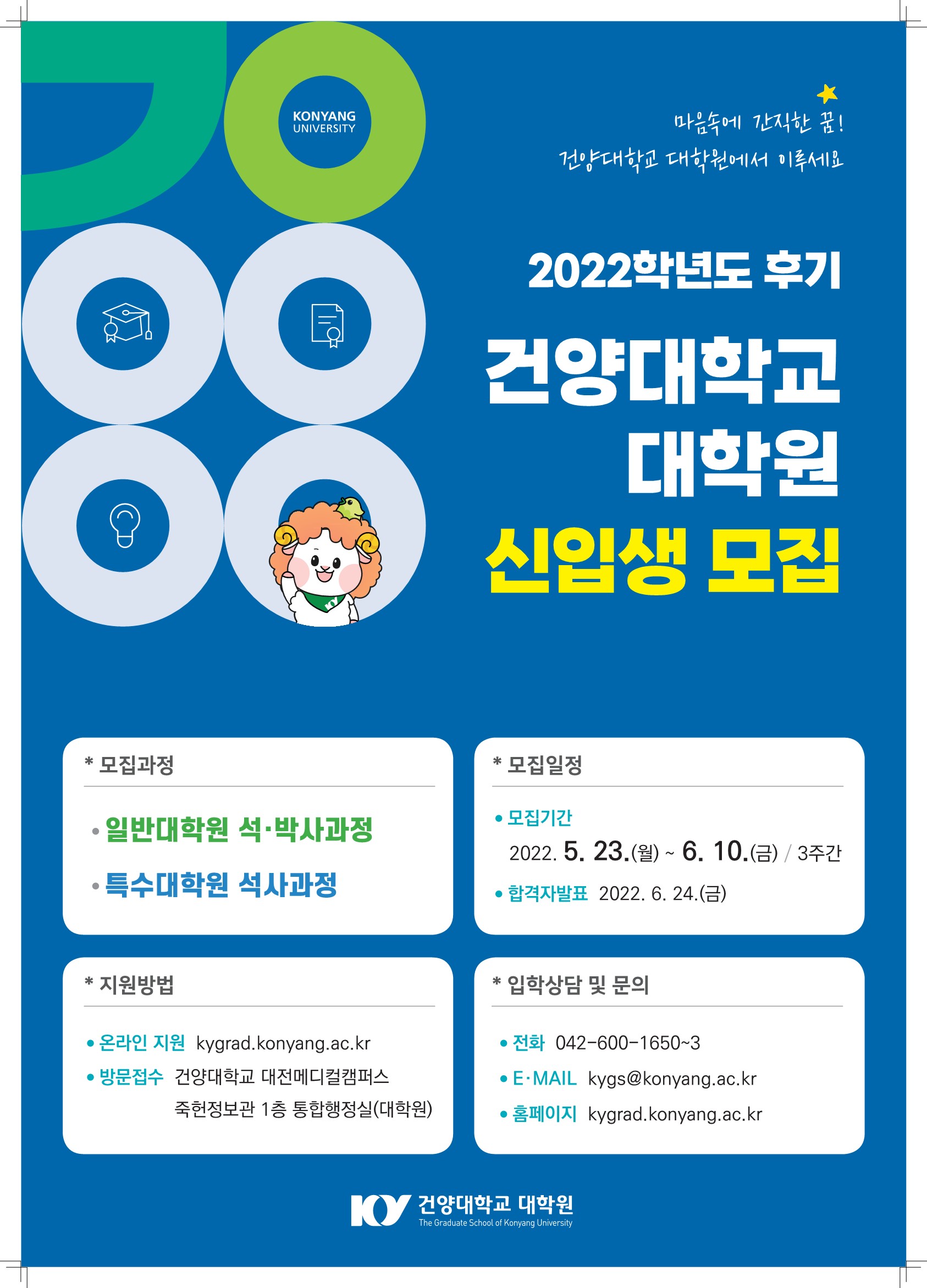 | 제목 | 2022학년도 후기 대학원 신입생 모집 안내 | ||||