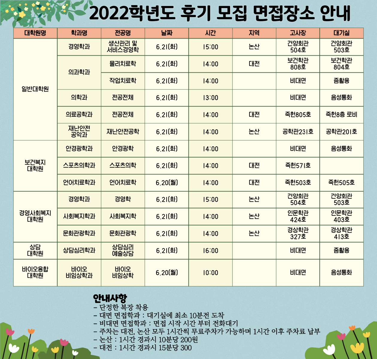 | 제목 | 2022학년도 후기 대학원 신입생 모집 면접장소 안내 | ||||