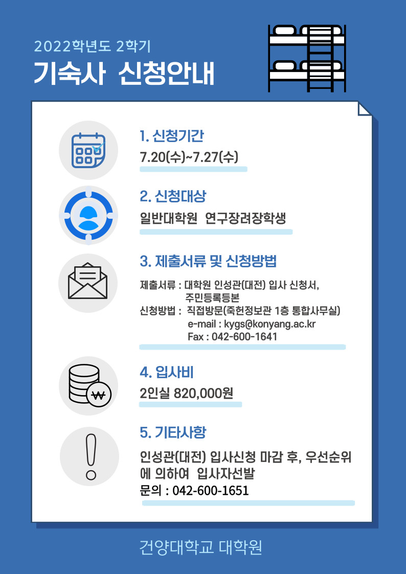 | 제목 | 2022학년도 2학기 기숙사 신청 안내 | ||||
