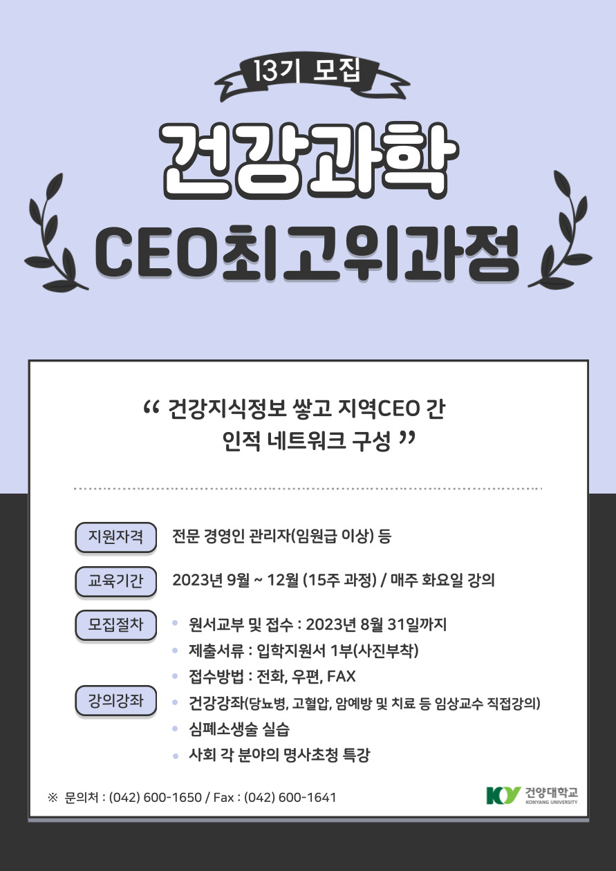 | 제목 | 건강과학 CEO최고위과정 제13기 모집 안내 | ||||