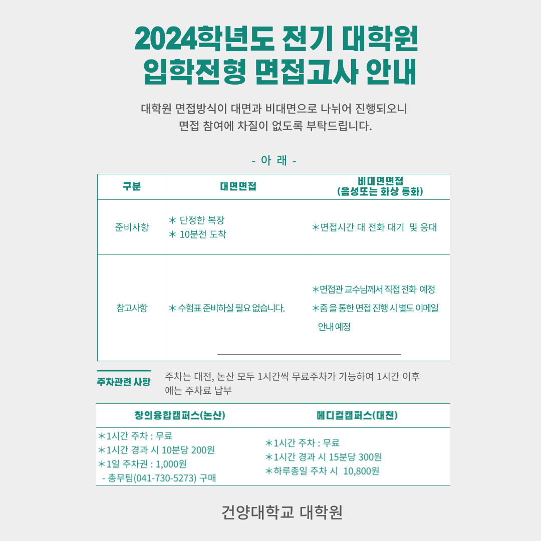 | 제목 | 2024학년도 전기 모집 면접 안내 | ||||